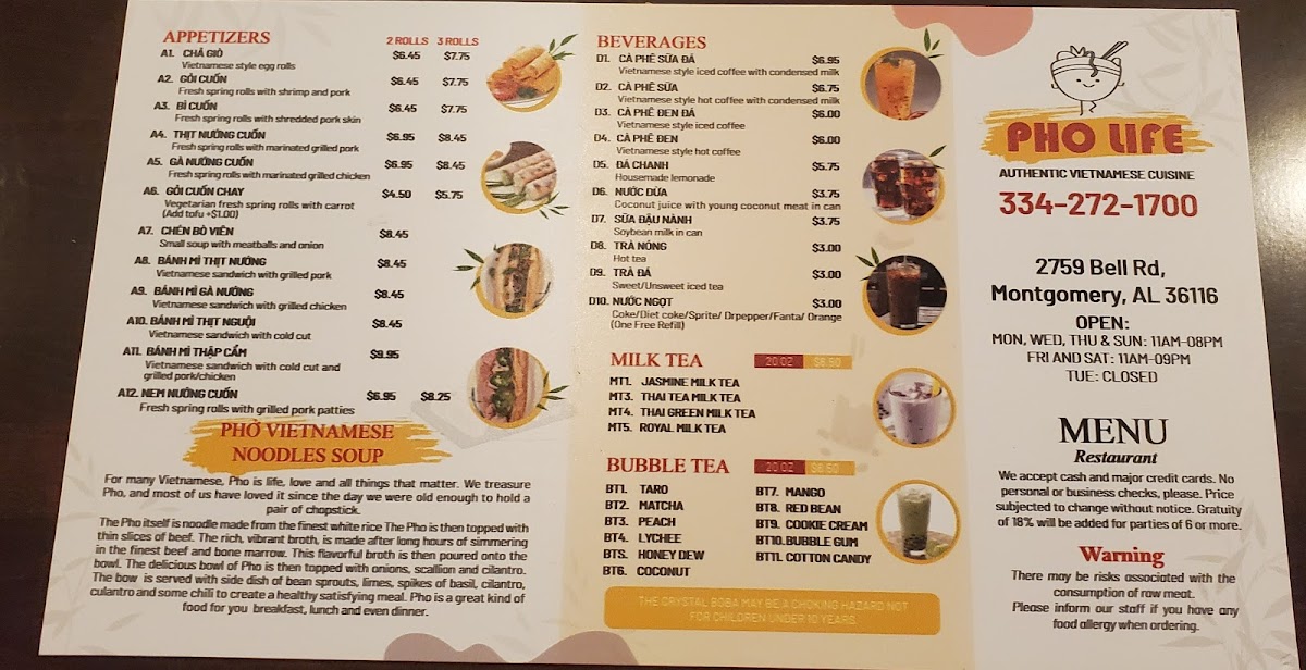 Welcome to Pho Life, your go-to destination for authentic Vietnamese cuisine located in Montgomery, AL. Known for its vibrant atmosphere and exceptional service, Pho Life offers a diverse menu that celebrates the rich flavors of Vietnam.